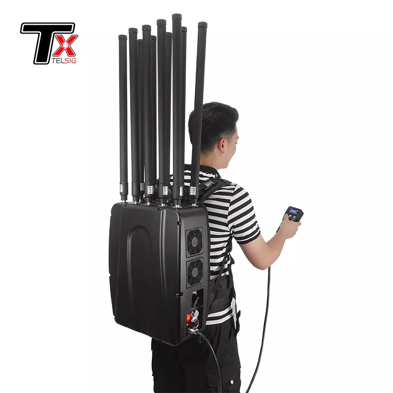 TX-BF-N1 Wearable Drone Signal Jammer е закочувач на сигнали од дрон во стил на ранец, опремен со вградена батерија што се полни. Телото е изработено од материјал отпорен на високи температури, кој е водоотпорен и отпорен на прашина. Со антени со голема засилување кои емитуваат сигнали за заглавување, врската помеѓу дронот и неговиот далечински управувач се прекинува и дронот се враќа. Вградениот интелигентен алгоритам за заглавување може автоматски да ја прилагоди стратегијата за заглавување според карактеристиките на сигналот на различните типови на дронови за да обезбеди ефективен ефект на заглавување.